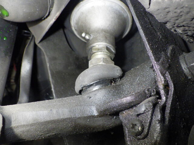 そして上側のナックルジョイントはアッパーアームから樹脂カップが完全に割れて飛び出してしまってます。。 交換が必要です。