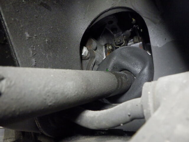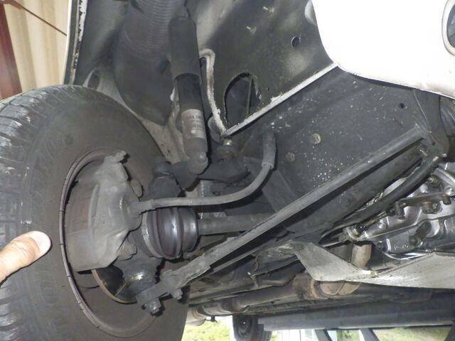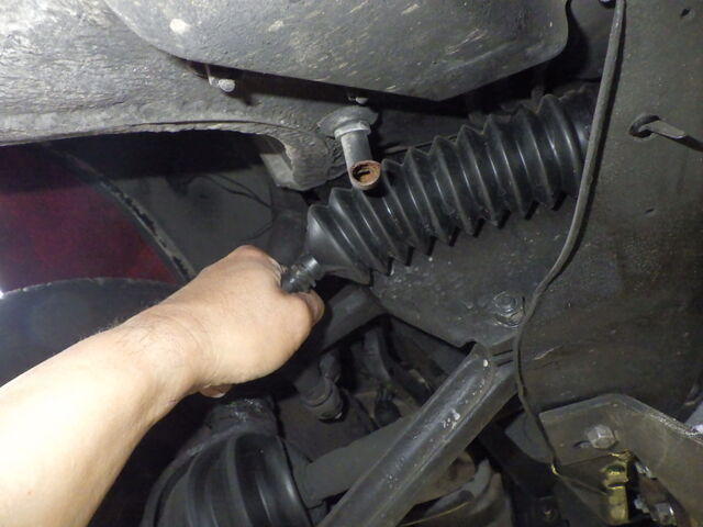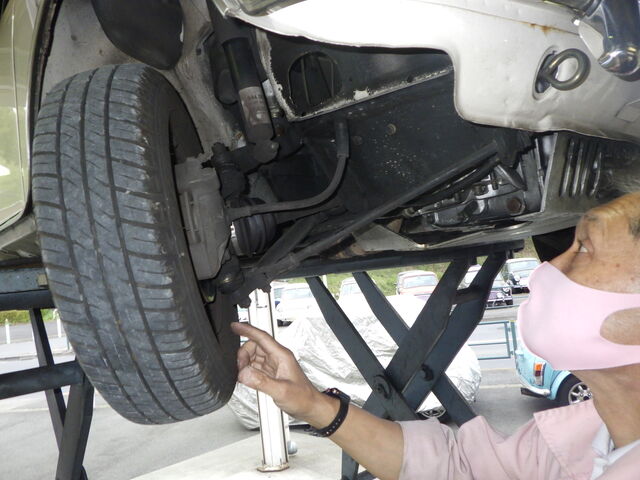 左のタイロッドを握って上下に揺するとカタカタと音とともにガタがあります。