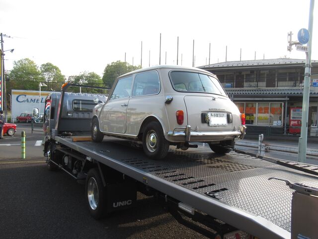 ストールしてしまったというご自分のMINIを任意保険のレッカーで搬入いただきました