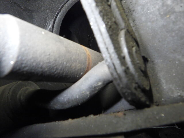 したの曲がったシャフト(ロアームサポートシャフト)との隙間があります。