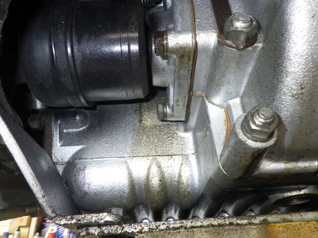 ミッションケースの前側の隙間からフィルターケースを覗くと・・・