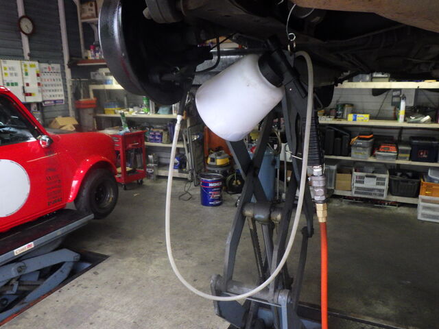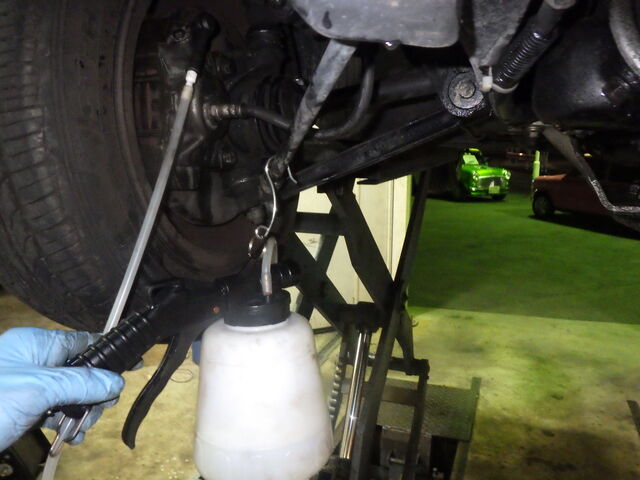 ホイールシリンダーの交換が完了したので、ブレーキフルードを補充しながらエア抜きを行っていきます