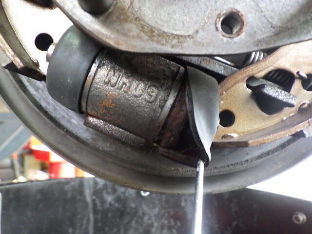 おそらくブレーキのホイルシリンダーカップからの漏れで間違いなさそうです。。。