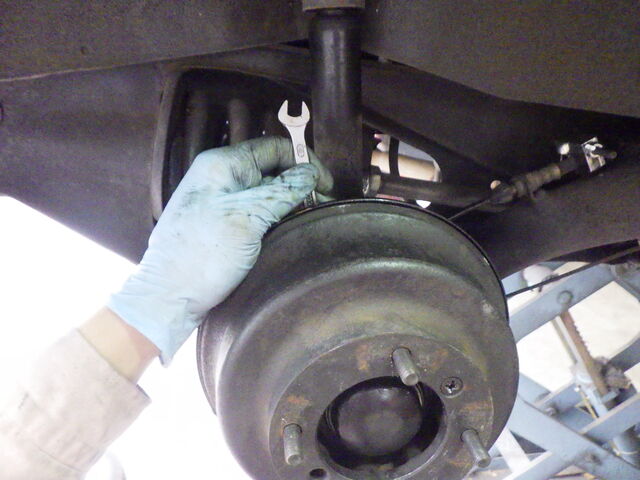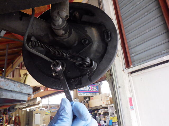 ドラムブレーキを組戻したら、アジャスターを操作しシューとドラムの当たり具合を調節します。