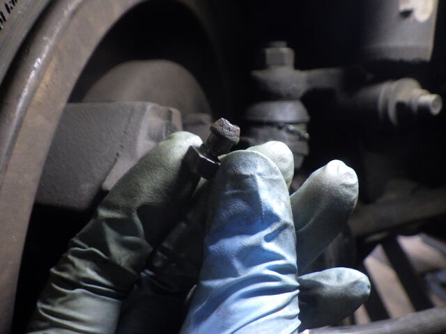 左前のエア抜きが終わり、右前のエア抜きをしようとしたらポキッ!とエア抜き用のニップルが折れてしまいました。