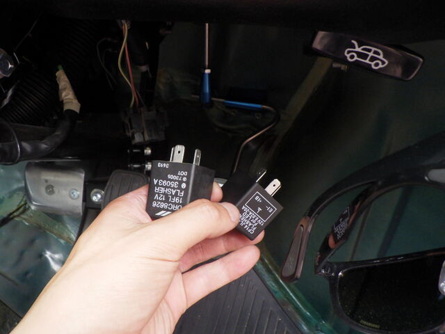 そうなると原因はハザードスイッチかリレーと思われますが、ひとまずリレーをテスト用に交換してみます。