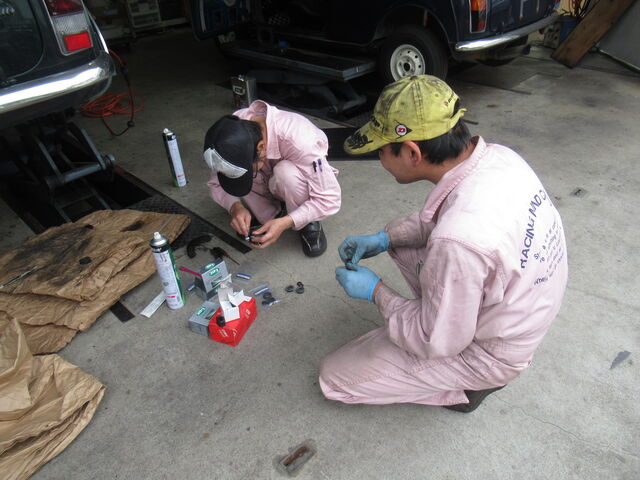 この二人はエンジン不調でレッカー入庫したMYN様ミニの点検です♪