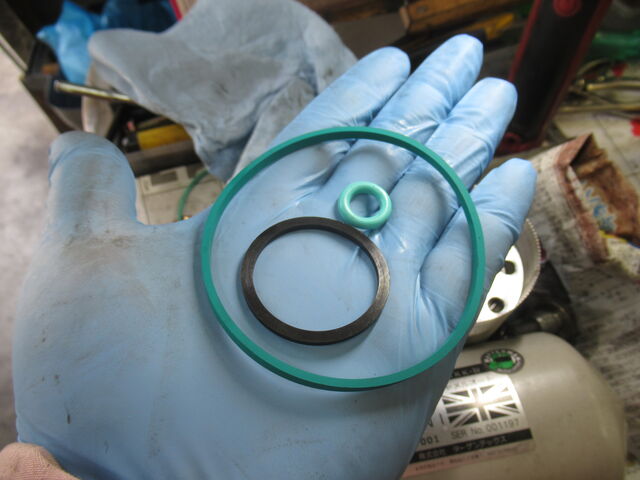 左のアッパーアームのシーリングリングも気になりますが・・・ここはラバコン交換する時一緒に交換しましょうね。
