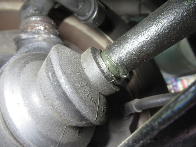 左アウターブーツの小端部からグリスが滲んでいるのも気になります。