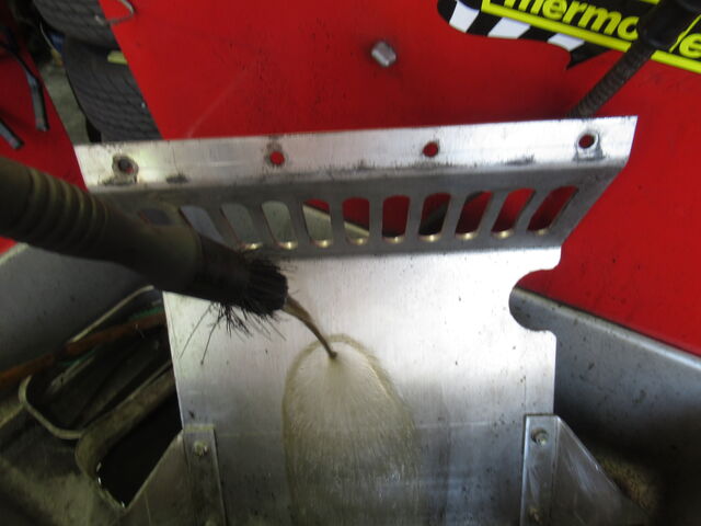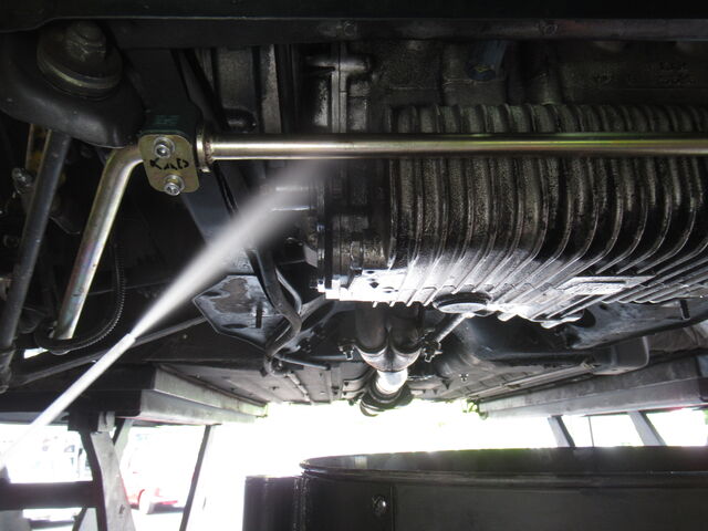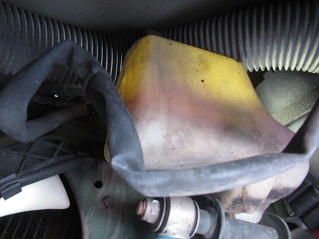 ラジエーターロアタンク付近にはLLCの滲み跡があります。