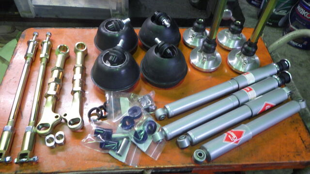 サブフレームマウントも全部交換して、調整式テンションロッドと気持ちいいハイキャスロアームまでせっとのフルコースで行きます。。