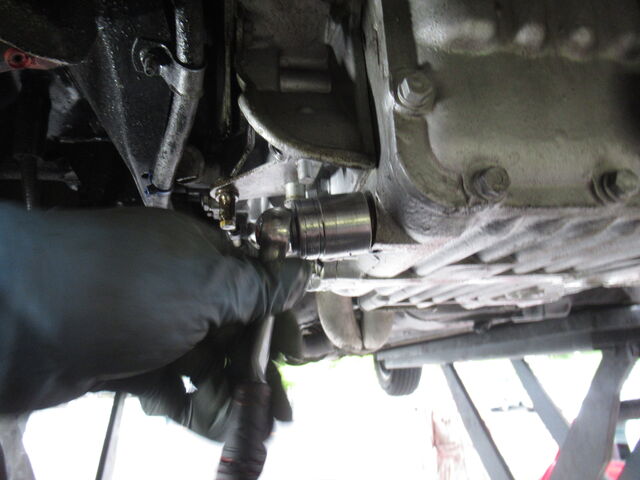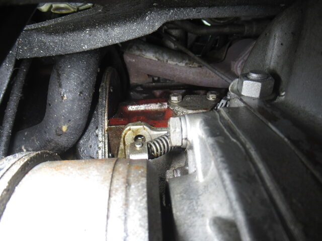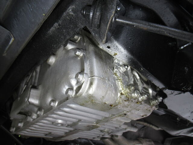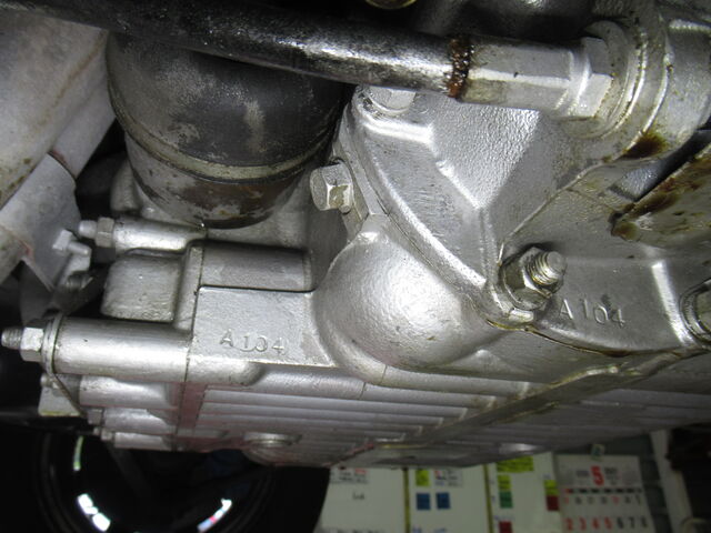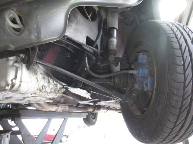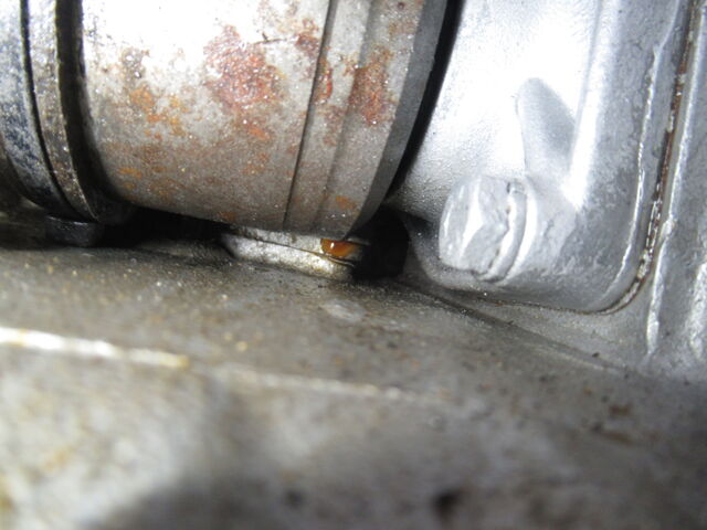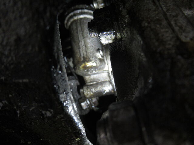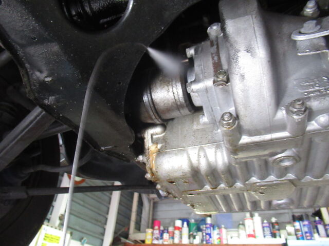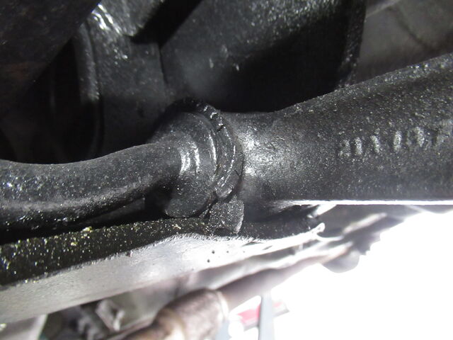 左ドライブシャフトの上側に付いているキックダウンスイッチからオイル滲みがあります。