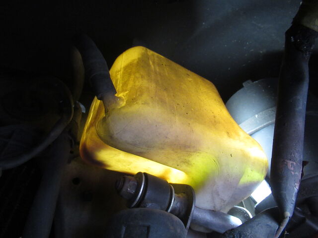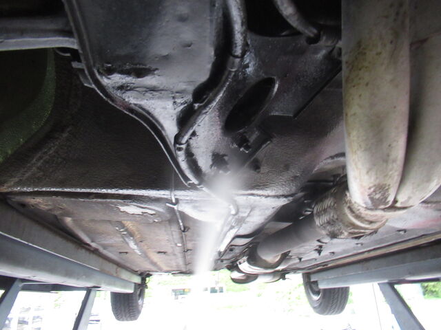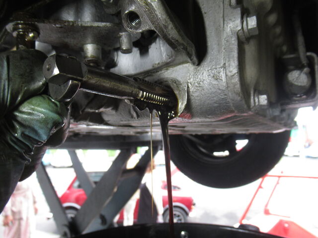 下から覗くとエンジンブロック(オレンジ部分)もオイルでツヤツヤしていますね。
