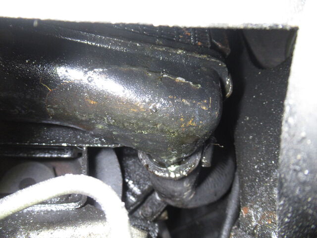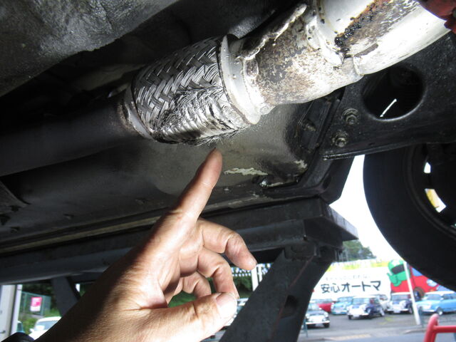 あっ。ダウンパイプの蛇腹部分に排気漏れありました。