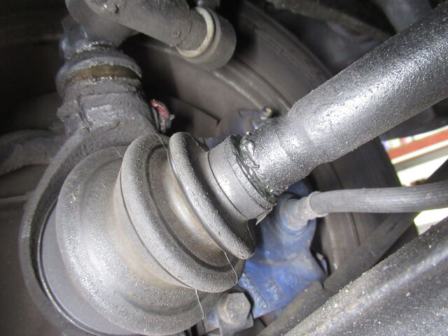 ドライブシャフトのアウターブーツ小端部からグリスが滲み出ています。