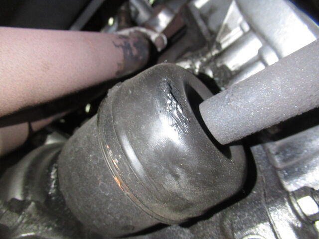 右のインナーブーツからグリスが散っています。