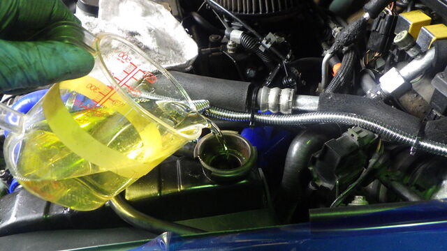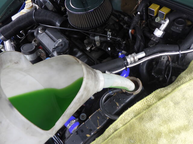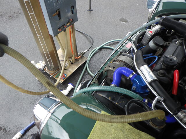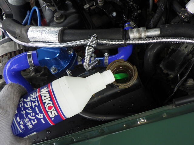 ヒーターコアも洗浄できるように、バルブを開けます。