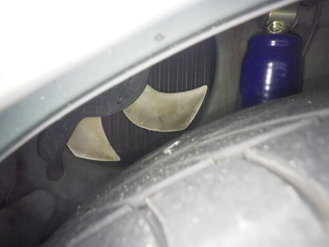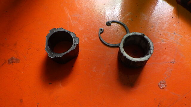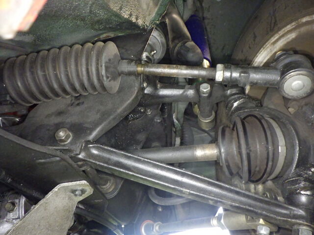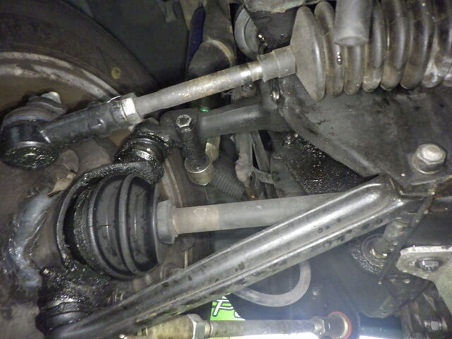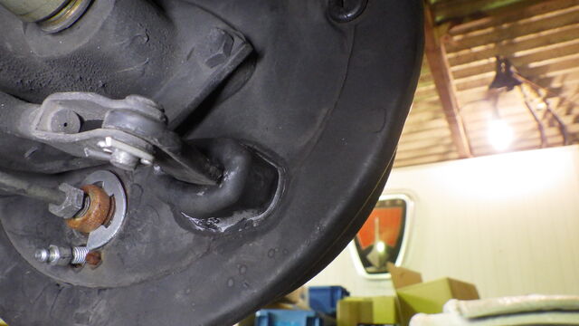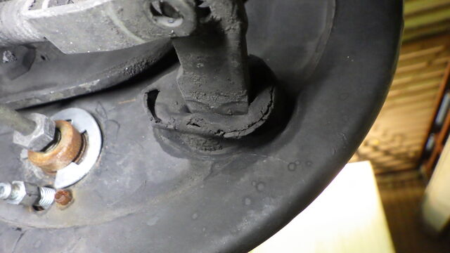 右ナックルジョイント、ブーツが被さっておらず更に樹脂カップの底が抜けて飛び出ています。
