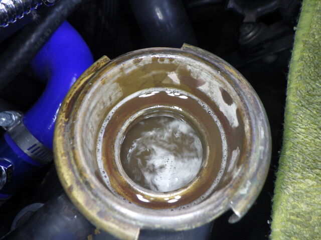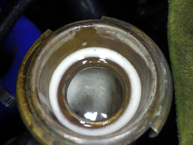 エンジン側から勢い良く冷却水が流れ込んで来ます。