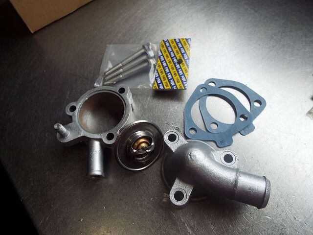 エンジン降ろしの際の分解中にネジ切れたサーモハウジングのボルトを抜き取りなら分解します