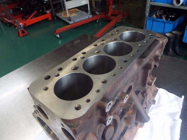 ブロックはハートピストン組込みのため内燃機屋へボーリングに出します。。