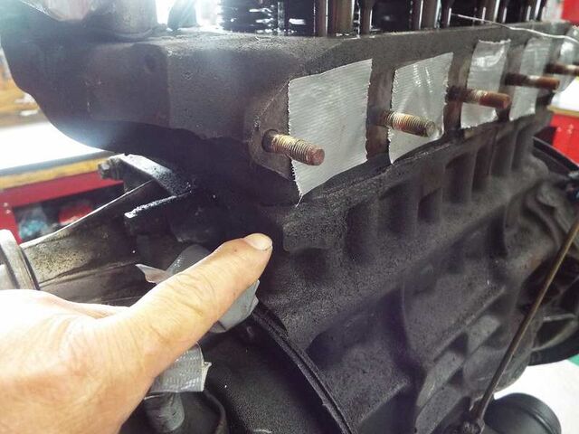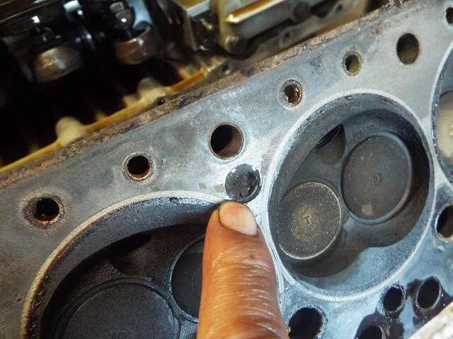 シリンダーヘッドの水路のブラインドプラグは腐食していました。。