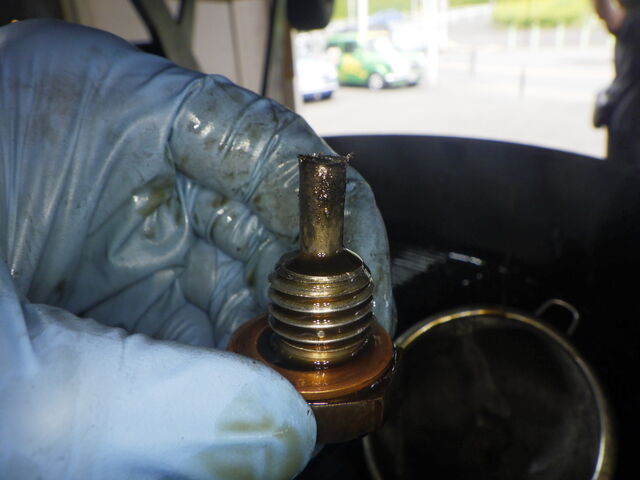 オイルを抜いていきます。色は褐色でした。