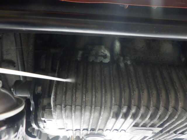 パーツクリーナーで油汚れを洗い流します。