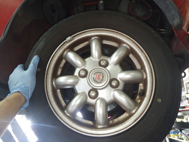 タイヤのサイドウォールに細かなヒビが発生しています、次の車検時にタイヤ交換することをおすすめいたします。