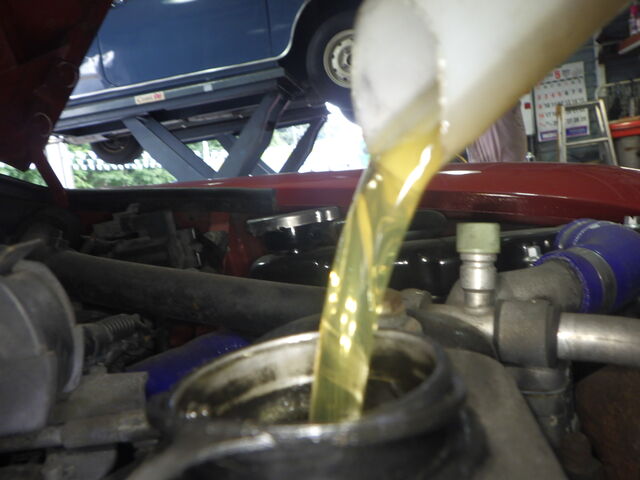 このエンジンはオイルが減るようですので、4CT-Sの5w-40に固めの10w-50をブレンドして減るのを少しでも抑えようとする作戦です。更に万能添加剤のSOD-1を添加しました。