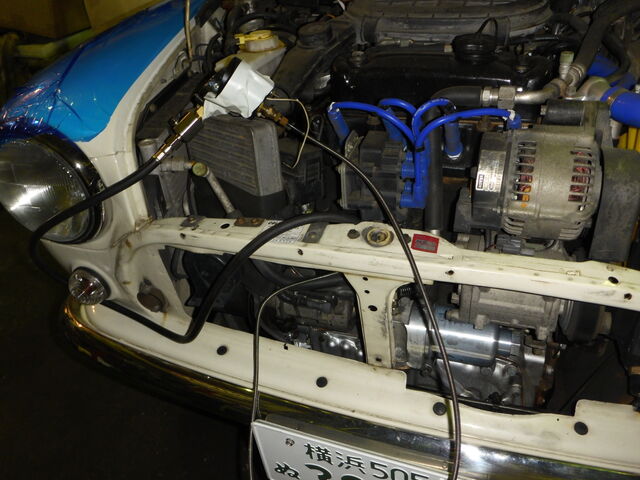かじかわ君に油圧計取付けてもらってます。