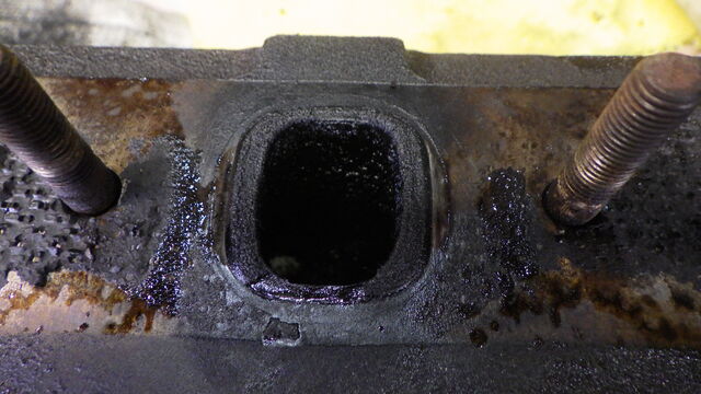 排気側にカーボンが堆積しすぎて、ほとんど塞がれた状態・・・。