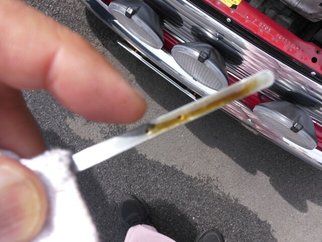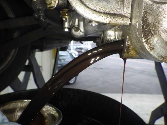 エンジンオイルを交換していきます。色は茶褐色でした。