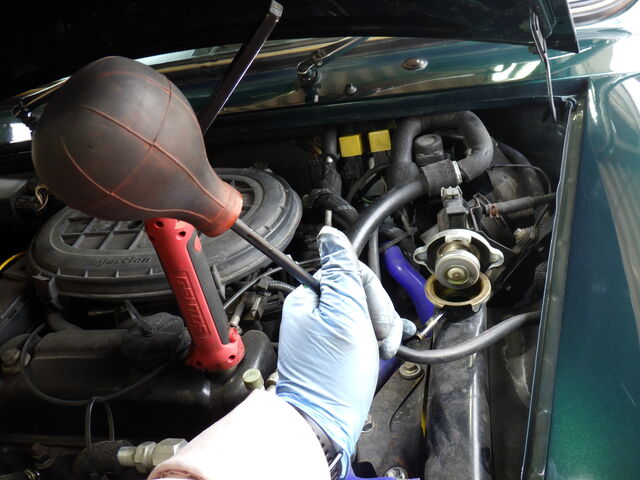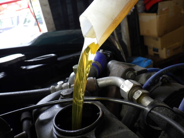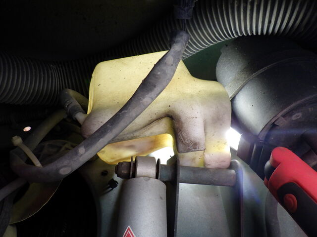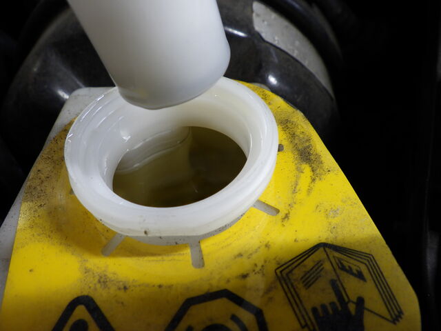 タイヤも取付終わってリザーブタンクへLLC補充。