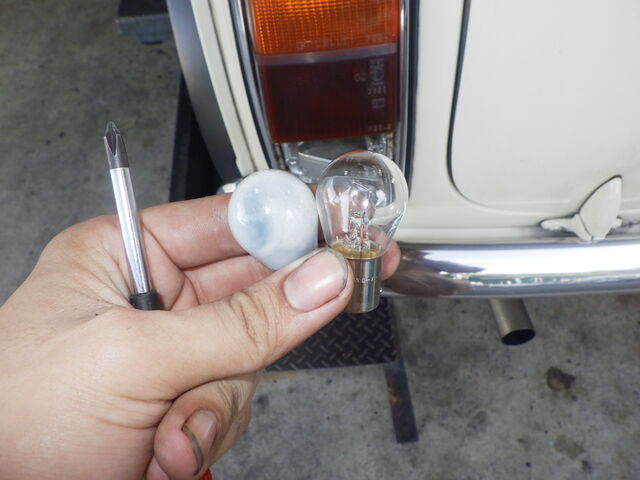 レンズを開けて取り外すとバルブは白濁していました。球切れのようです。