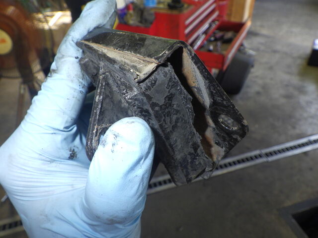 外したサブフレームマウントはご覧のとおりパックリ、金属部分とゴムの部分が剥離してしまっています。 製造時の接着不良ですね・・・・
