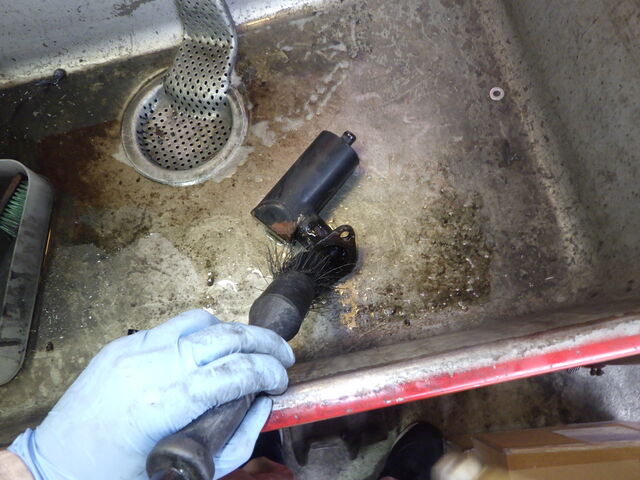 破けたブーツを取り外し古いグリスを洗い流します。