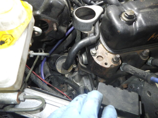 ステディロッドを外しやすいようブローバイセパレータを外して、ついでにお掃除しておきます。