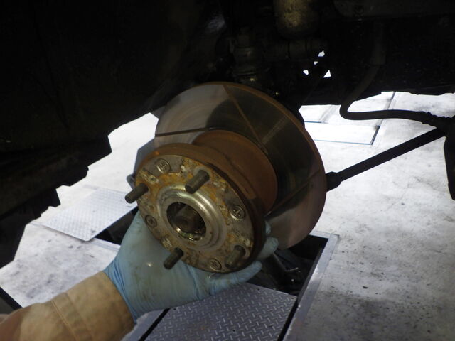 ドライブシャフトを抜くためにブレーキ、スイベルを外していきます。