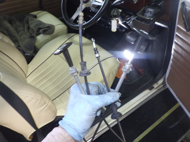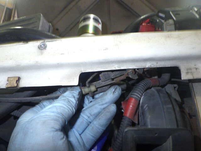 スロットルポジションセンサーを交換していきますが、その前にボンネットオープナーがとてつもなく硬いので、先に交換してしまいます。