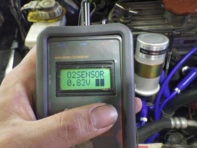 取り付けたら位置の調整。水温80℃以上でスロットル電圧0.45v~0.48vにおさまるよう調整します。