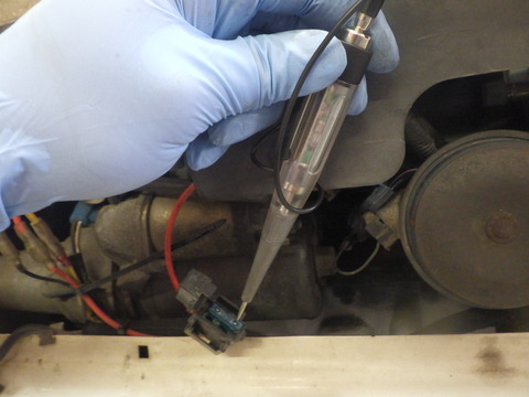 フォグランプリレーに入るヒューズの点検。入口側は問題なく電気が来ています。
