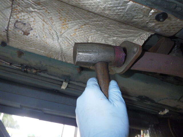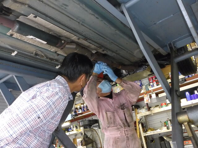 今度ドライブでカーフェリーに乗る際、スロープで引きずる恐れがあるため、この下がった部分を上げていきます。