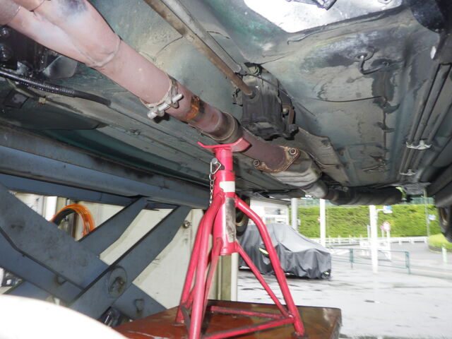 下がってしまったジョイント部分は、ジャッキにウマを乗せて真っ直ぐなるように修正しました。