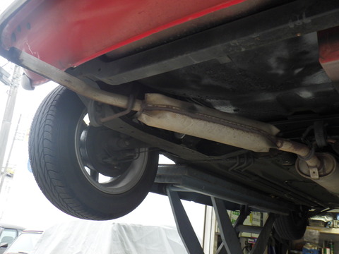 リアマフラーはだいぶ錆びて内部剥離が進んでいますが排気漏れはありませんでした。