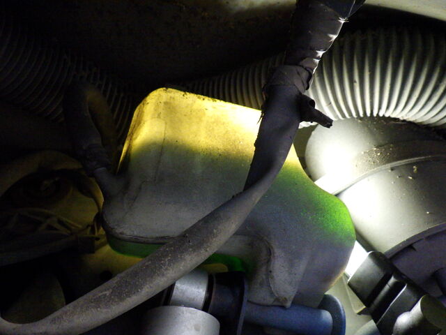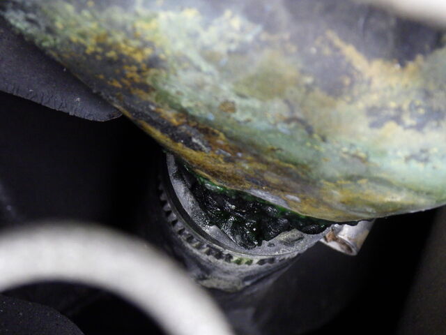 ラジエーターのロアタンクとロアホースに辺りに嫌な染みがあります。