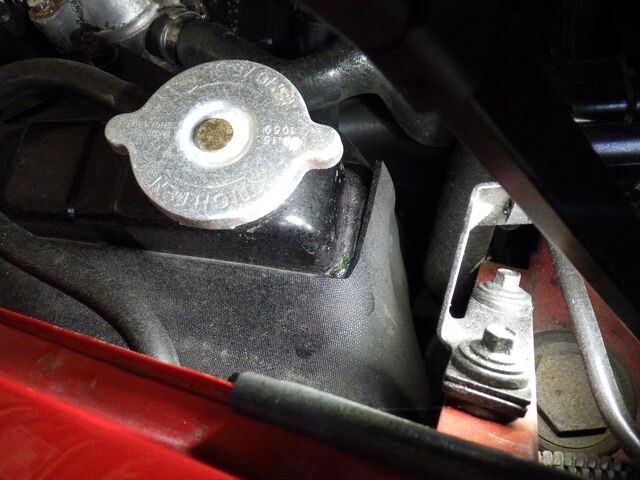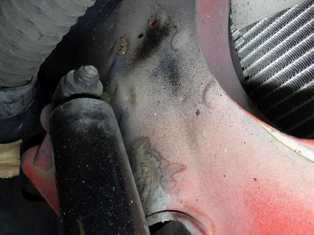 ラジエーターのアッパータンクにポツンとLLC滲みあります。