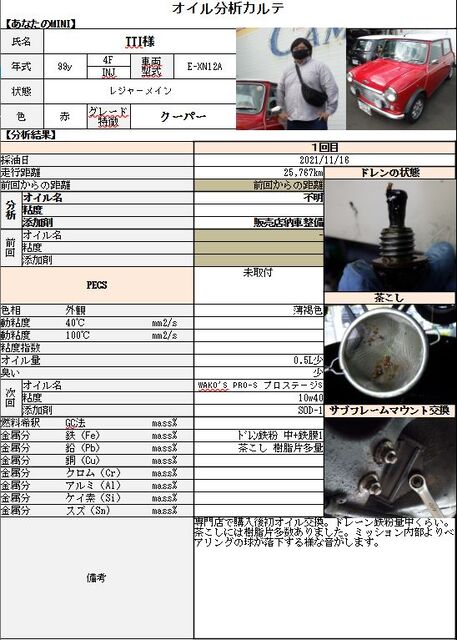 今回初のオイル交換でしたのでオイルカルテを作りました。