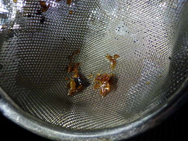 茶こしには・・・樹脂が大量に引っ掛かっています。
