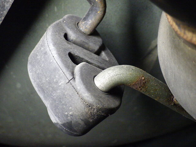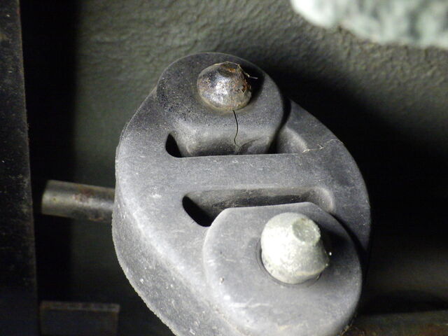 マフラー吊りゴムにクラックあり。